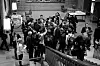 Fotografer og reportere flokker seg rundt statsminister Erna Solberg når hun ankommer Stortinget for å delta på partilederdebatt. Arkivfoto: Andrea Gjestvang