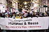 Årets fredspris skal understreke hvor viktig presse og ytringsfrihet er for demokrati og fred, og bilder av journalister som er drept i sitt arbeid for demokrati, ble vist fram i toget.