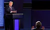 Donald Trump (t.v.) og Joe Biden under den første presidentdebatten i Cleveland i forrige uke.