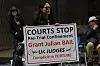 Demonstranter utenfor rettslokalene i London.Foto: Frank Augstein / AP / NTB