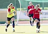 Cecilie Redisch Kvamme og Caroline Graham Hansen på landslaget i fotball, trener på Melløs stadion før avreise til fotball-VM i Frankrike, som skal vises på NTK og TV 2. Foto: Terje Pedersen / NTB scanpix