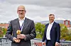 Kringkastingssjef Thor Gjermund Eriksen fikk overlevert symbolet på at NRK er landets mest populære bedrift av Randstad-sjef Eivind Bøe.