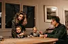 Ludvig setter seg ned på plassen sin rundt bordet og småprater med mamma.
