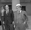Floyd Abrams (t.v.) og advokatkollega Lawrence McKay. De to har i den den føderale rettsbygningen bak seg forsvart New York Times' publisering av Pentagon Papers. Bildet er fra juni 1971.Foto: Anthony Camerano / AP / NTB