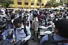 Utenfor lokalene til avisen Voice of Democracy hadde det mandag samlet seg en gruppe demonstranter, og et dusin politifolk blokkerte veien da tjenestemenn fra regjeringen leverte ordren om å stenge.Foto: Heng Sinith / AP / NTB