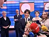 I hans siste debatt var samtlige partiledere tilstede. De ble værende etter sending for å hylle innsatsen til Solvang.