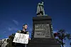 EU har bedt Russland om å etterforske anklager om valgfusk. Her en demonstrant under folkeavstemningen i Moskva med en plakat der det står «Putin for alltid?»