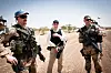 Forsvarets forum-journalist Silje Kampsæter, her fra fotpatrulje i Timbuktu sentrum med svenske soldater, som i fjor hadde et etterretningsbidrag for FN i Timbuktu, Mali.