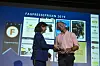 Fagpressens journalistpris 2019 går til redaktør Ole Martin Mortvedt og journalist Erik Inderhaug i Politiforum. Her mottar redaktør Mortvedt prisen fra scena. Foto: Kristine Lindebø