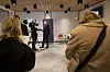 Områdedirektør Geir Bukholm i Folkehelseinstituttet blir intervjuet, mens andre står i kø.