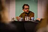 Joachim Førsund holder foredrag om hvordan han jobber med fortellende journalistikk.Foto: Morgane Fauconnier