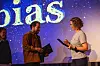Førsund fikk diplom for podkasten Tobias under konferansen Fortellingens kraft i Bergen.Foto: Morgane Fauconnier