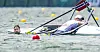 Are Strandli (t.v.) og Kristoffer Brun var på vei til finale, men veltet under semifinalen i dobbeltsculler på roarenaen Sea Forest Park.Foto: Lise Åserud / NTB