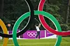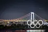 De fem OL ringene pryder den berømte Rainbow Brigde (Regnbuebroen) i Tokyo.Foto: Heiko Junge / NTB