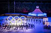 Den historiske åpningsseremonien på Olympiastadion i Tokyo. Kun 950 personer, bestående av funksjonærer, presse og VIP fikk lov til å være til stede i OL-arenaen.Foto: Heiko Junge / NTB