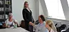 Styrelder Anne Lise Meyer ønsker innflytelse på Dagens Næringsliv. Her hilser hun på Dagblad-journalist Rolf Fiske før generalforsamlingen som vedtok endelig salg av avisen. Foto: Glenn Slydal Johansen