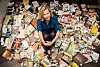 Marta Breen mener man må være i en livsfase hvor man kan jobbe hele døgnet for å klare seg som frilanser. Her er hun omkranset av de 244 bøkene en Dagbladet anmelder må lese. Foto: Kathrine Geard