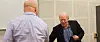 Nils Øy hilser på Erik Schjenken. Foto:Kathrine Geard