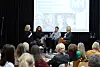NRK-redaktør Grethe Gynnild-Johnsen (t.h.) på scenen under Medienettverkets vårmøte i Oslo, sammen med teatersjef Hanne Tømta ved Nationaltheatret. Foto: Nils Martin Silvola