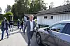 Tom Hagens forsvarer Svein Holden utenfor huset i Sloraveien på Lørenskog.