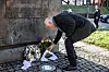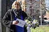 Unesco-kommisjonens Rune Ottosen blomsterkranser ved minnesmerket, etterfulgt av Tinius-styreleder Ole Jacob Sunde og Kjersti Løken Stavrum fra Norsk Pen.