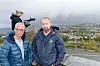 Teamet går ut av bilen for å ta noen oversiktsbilder av Trondheim. Tunge skyer og lokale regnbyger gir det de tror blir mørke, gode og passende Insider-bilder.