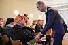 Bjørn Olav Jahr hilser på Viggo Kristansen i forbindelse med at Jahr ble tildelt Fritt Ords Honnør for grundig og standhaftig journalistikk som avdekket justismord i Baneheia-saken og bidro til oppheving av erstatningsdommen mot fetteren i Birgitte Tengs-saken.