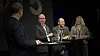 Gard Steiro, Ulf André Andersen og Tone Tveøy Strøm-Gundersen diskuterte Marius Borg Høiby-dekningen på vegne av henholdsvis VG, Se og Hør og Aftenposten. Ordstyrer Bjørn Rønningen i forgrunnen.