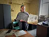 Aleksander Viktorovytsj viser fram gamle utgaver.Foto: Ole Dag Kvamme