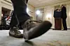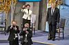 I bakgrunnen er fredprisvinner Maria Ressa også på «jobb», og sikrer seg egne bilder av kong Harald, dronning Sonja og kronprins Haakon. På hennes høyre side står Dmitrij Muratov, som fikk fredsprisen sammen med Ressa.