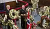 Krigshelten Joachim H. Rønneberg begraves i Borgund i kirke tirsdag formiddag. Forsvarssjef Haakon Bruun-Hanssen taler. Foto: Staale Wattø / NTB scanpix
