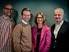 Produsent Christian Lyder Marstrander og programledere Svein Tore Bergestuen og Eva Sannum med Journalisten-redaktør Roger Aarli-Grøndalen.