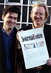 Helge Værland og Terje Andersen laget ny logo til Journalisten i 1993.