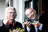 Espen Moe med nettprisen Journalisten fikk av Fagpressen og redaktør Helge Øgrim med sin hederspris. Foto: Kathrine Geard