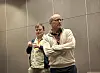 Per Magne Tveiten, konsernsjef i Mentor Medier (t.h.) Her sammen med leder for redaksjonsklubben i Dagsavisen, Pål Karstensen.