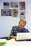 Rødts ordfører-kandidat i Stavanger, Mímir Kristjánsson, håper han får mer tid til å skrive nå når han er politiker enn da han var nyhetssjef i Klassekampen. Og at han en dag vil komme tilbake til journalistikken. Alle foto: Kristine Lindebø