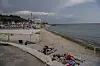 Bruland er sammen med en fotograf fra Ungarn og en fikser fra Polen, og forteller om dempet stemning i strandbyen.