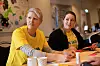 Redaktør i Kulingen, Hilde Kvammen, og markedsleder i Os og Fusaposten, Karen Velure, følger godt med på instruksjonene fra scenen under idéfesten.Foto: Mats Greger