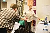 Jens Barland (t.h) fra Høyskolen Krisiania tegner opp idéer, mens Svein Hilmo (t.v) fra Selbyggen og Hilde Førland Eide fra Sunnhordland følger nøye med.Foto: Mats Greger
