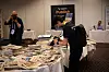 Ingvild Sjo fra Kvinnheringen (t.v.) og markeds- og informasjonssjef i LLA, Geir Hus, slår av en praten under lunsjen lørdag.Foto: Mats Greger