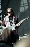 15. Her ser vi Neil Young på Kalvøya-festivalen i 1993 der han har på seg ei T-skjorte med påskriften Young Neils, hvem spiller bass i dette norske bandet?
