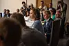 – Jeg tror jeg bare må gå nå, sier hun og forsvinner i folkemengden.