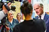 En ny studie fra UiS viser en politisk kjønnsubalanse i norske nyhetsoppslag. Illustrasjonsbildet viser Høyre-leder Erna Solberg (t.v.) og FrP-leder Sylvi Listhaug som venter på å bli intervjuet etter statsminister Jonas Gahr Støre (Ap).Foto: Håkon Mosvold Larsen / NTB