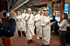 Kommersiell avdeling i NTB stilte (frivillig?) som Lucia i år. Fremst og Lucia: Marius Rasten, bak han Hege Puntervill, Ina M. Øhre, Tormod H. Stikbakke, Marianne Bernecker, Joakim Nilsson, Hilde Klausen og Anders Vallenes.Foto: Privat / NTB