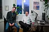 Journalisten møter journalistene Peter Daatland og Martin Holvik idet de har en førpremière på første episode av podkasten, på kontorfellesskapet hvor Daatland leder podkastselskapet Filt Oslo.