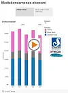 Sett markøren på søylene for å se detaljerte tall. I boksene øverst i den interaktive grafikken kan du velge mellom kvartalsvise driftinntekter og brutto driftsresultat (EBITDA) for de største mediekonsernene det siste året. Ved hjelp av rullegardinmenyen over konsernnavnene kan du isolere tallene for ett eller flere av konsernene.