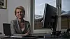 Det ubehandlede opprinnelige bildet viser hustaket fra nabobygningen i vinduet bak Merete Smith. Innfelt bildet Smith la ut på Twitter i helgen. Foto: Thomas Haugersveen/Dagens Næringsliv