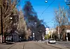 Donetsk sentrum i starten av desember 2022, etter at et missilangrep har truffet markedsområdet «Mayak». Brannmenn er på plass, men tre minutter senere kommer et nytt missilangrep på åstedet, skriver Morten Risberg i Klassekampen.Foto: Morten Risberg