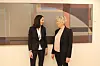 Forhandlingslederne Else Margrethe Husby fra MBL (til venstre) og Elin Nykaas fra NJ like før kravoverlevering. Foto: Glenn Slydal Johansen