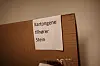 En plastboks huser gamle VHS-filmer, en annen er fylt til randen med fyllepenner og blekk. På bordet ligger det verktøy, blant annet en applikator for lim.